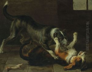 Nicasius Bernaerts, also known as Nicasius van der Bergh, was a Flemish painter born in Antwerp in 1620. He is particularly renowned for his vivid and realistic animal paintings, especially those depicting hunting scenes, animals in combat, and still lifes of dead game. Bernaerts was a pupil of the famous painter Frans Snyders, who was a master of Baroque still lifes and animal paintings. Under Snyders, Bernaerts honed his skills and developed a keen eye for detail and a vivid sense of realism, which would become hallmarks of his work.