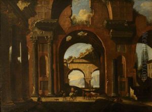 A Capriccio Of A Classical Ruin With Figures (+ A Capriccio With Figures Admiring A Sculpture Near A Classical Arch; Pair)