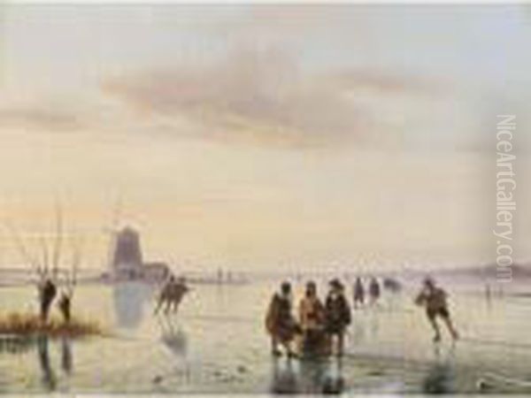A Winter Landscape With Figures On The Ice