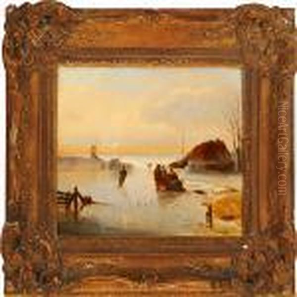 Dutchlandscape With People On A Frozen Lake