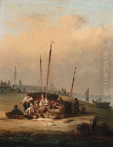 Schooners At Their Moorings Before A Low Countries Port