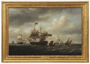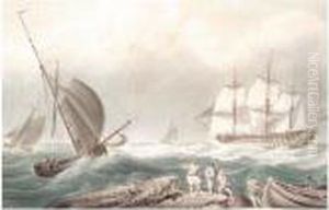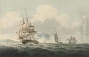 A Frigate Offshore, Astern Of A Large Cutter, With An Armed Luggeroff Her Starboard Beam; And A Frigate Reefed Down In Heavyweather