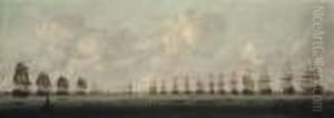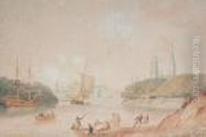 A Coastal Landscape With Fisherfolk On A Beach, With An English Naval Frigate Coming Into Port