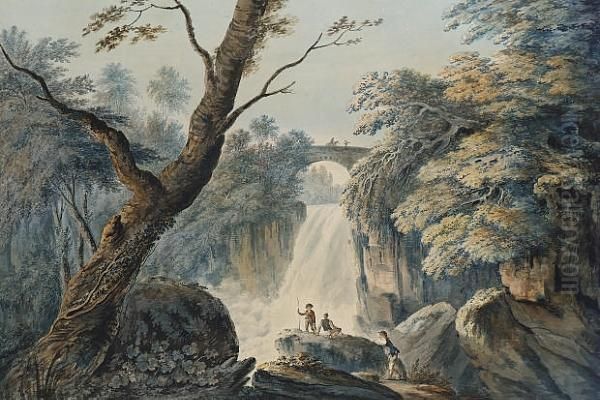 Figures By A Waterfall, Possibly Aira Force, Near Ullswater, Cumbria