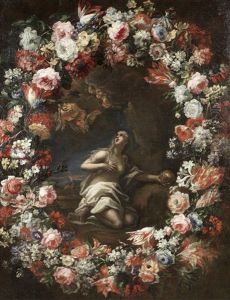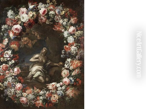 The Penitent Magdalen Surrounded By A Garland Of Flowers