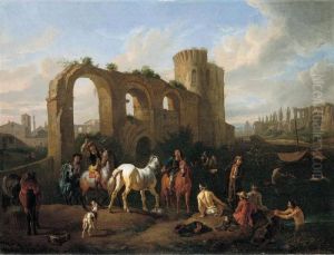 An Italianate Coastal Landscape With Figures Before A Ruined Portico