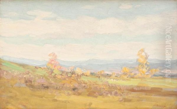 Peisaj Pe Valea Posadei, Cu Ciobanas Cu Turma De Oi, In Departare