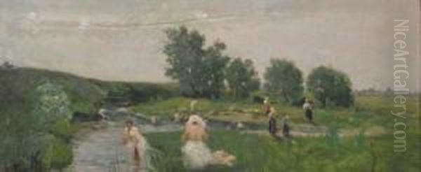 Bring the timeless beauty of Nicolae Petrescu Mogos's Bathing into your home with a handmade oil painting reproduction. Carefully recreated on canvas by skilled artists using traditional techniques, this piece captures the delicate brushwork, subtle light, and vibrant color of the original masterpiece. With museum-level quality and rich texture, it brings elegance and artistic depth to any space. Enjoy free shipping and make this masterpiece a part of your personal collection.
