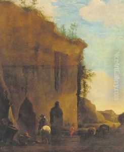 Throughout his career, Berchem experimented with various subjects, including genre scenes, animal studies, and Biblical and mythological narratives, but his Italianate landscapes remained his most popular works. His paintings were sought after by collectors and fellow artists alike, and they had a considerable impact on the development of landscape painting in Europe. Berchem also occasionally painted the staffage for other artists' landscapes, including works by Jacob van Ruisdael and Paulus Potter.