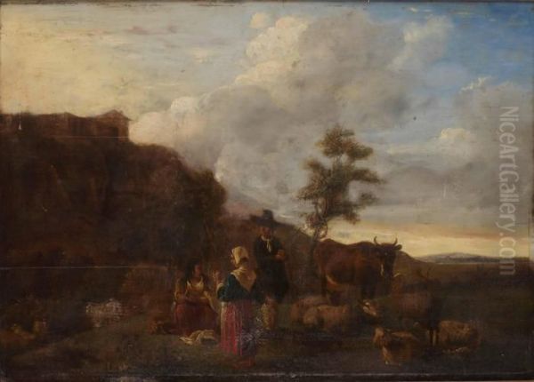 Pastoralt Landskap Med Boskap Och Herdepar