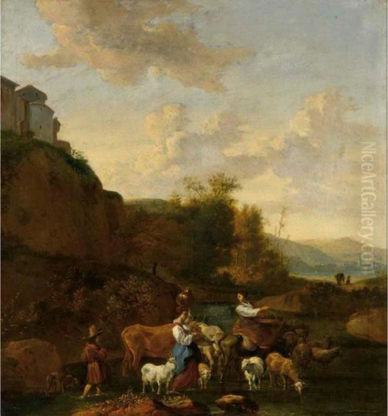 Bring the timeless beauty of Nicolaes Berchem's Shepherdesses And Their Flock In An Italianate Landscape into your home with a handmade oil painting reproduction. Carefully recreated on canvas by skilled artists using traditional techniques, this piece captures the delicate brushwork, subtle light, and vibrant color of the original masterpiece. With museum-level quality and rich texture, it brings elegance and artistic depth to any space. Enjoy free shipping and make this masterpiece a part of your personal collection.