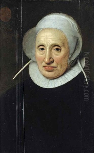 Portrait Of Cristina Brunt, Half-length, In A Black Dress With A White Collar And A White Lace Cap