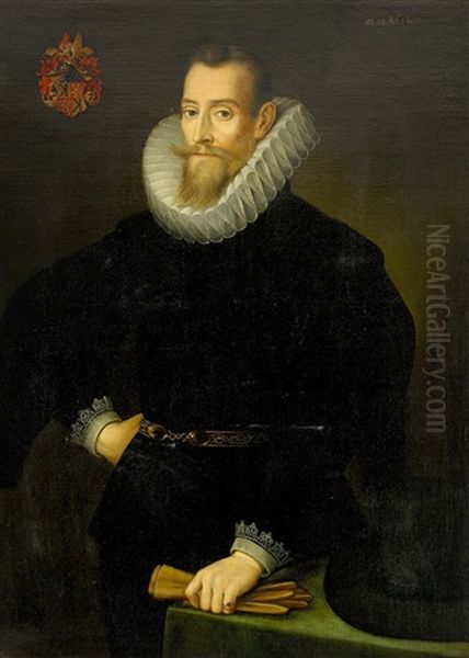 Portratt Av Adelsman Kladd I Svart Drakt Med Spetsmanschetter Och Kvarnstenskrage - Staende Knastycke