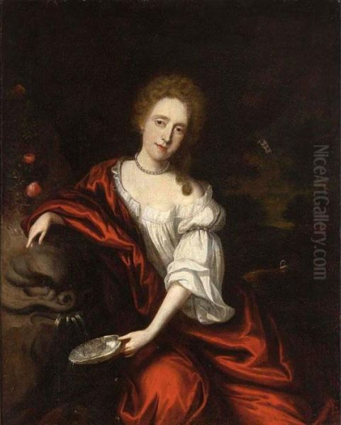 Bring the timeless beauty of Nicolaes Maes's An Elegant Lady Near A Fountain, Seated Three-quarter Length, Wearing A White Blouse, Red Satin Shawl And A Pearl Necklace into your home with a handmade oil painting reproduction. Carefully recreated on canvas by skilled artists using traditional techniques, this piece captures the delicate brushwork, subtle light, and vibrant color of the original masterpiece. With museum-level quality and rich texture, it brings elegance and artistic depth to any space. Enjoy free shipping and make this masterpiece a part of your personal collection.