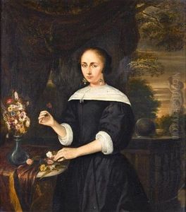 Bring the timeless beauty of Nicolaes Maes's Portrait Of A Lady, Small Three-quarter-length, In A Black Dress With White Collar And Cuffs, Arranging Flowers At A Draped Ledge, On A Balcony into your home with a handmade oil painting reproduction. Carefully recreated on canvas by skilled artists using traditional techniques, this piece captures the delicate brushwork, subtle light, and vibrant color of the original masterpiece. With museum-level quality and rich texture, it brings elegance and artistic depth to any space. Enjoy free shipping and make this masterpiece a part of your personal collection.