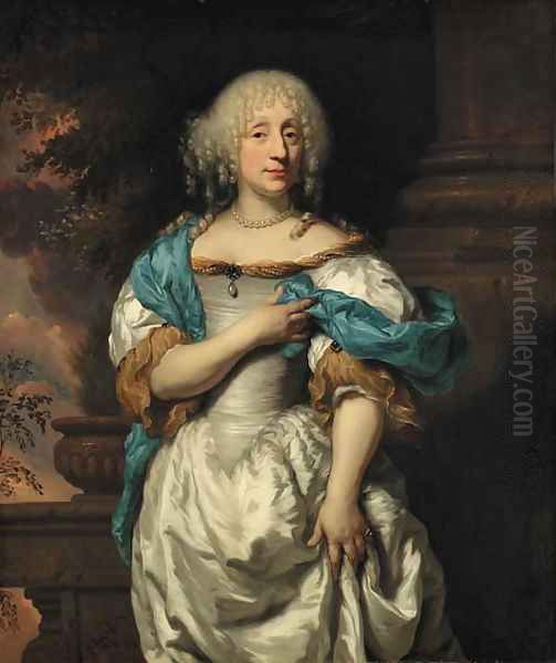 Bring the timeless beauty of Nicolaes Maes's Portrait of a lady, three-quarter-length, in a white dress and a blue shawl, on a terrace, a wooded landscape beyond into your home with a handmade oil painting reproduction. Carefully recreated on canvas by skilled artists using traditional techniques, this piece captures the delicate brushwork, subtle light, and vibrant color of the original masterpiece. With museum-level quality and rich texture, it brings elegance and artistic depth to any space. Enjoy free shipping and make this masterpiece a part of your personal collection.