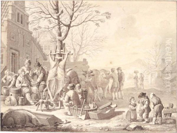 Bring the timeless beauty of Nicolaes Matthijsz. Aartman's A Village Scene: November into your home with a handmade oil painting reproduction. Carefully recreated on canvas by skilled artists using traditional techniques, this piece captures the delicate brushwork, subtle light, and vibrant color of the original masterpiece. With museum-level quality and rich texture, it brings elegance and artistic depth to any space. Enjoy free shipping and make this masterpiece a part of your personal collection.