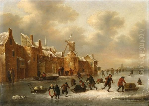 Eisvergnugen Vor Den Toren Einer Hollandischen Stadt