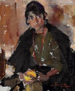 In 1923, Fechin emigrated to the United States with his family after the Russian Revolution. They settled in New York City, where he taught at the New York Academy of Art. Fechin's work was well received in the United States, and he quickly became known for his dynamic brushwork and ability to capture the essence of his sitters. His portraits often combined a modernist sensibility with elements of Russian and Asian art, reflecting his diverse influences.
