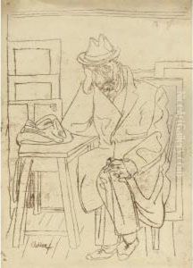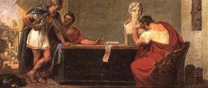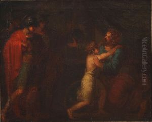 Two Roman Warriors Watching A Seated Man Embracing A Child
