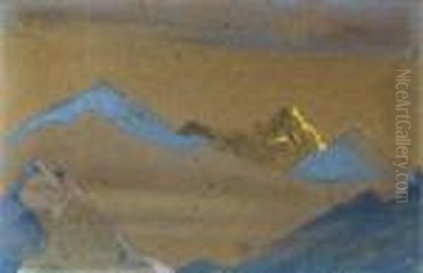 Himalayan Landscape Oil Painting by Nicolaj Konstantinov Roerich