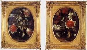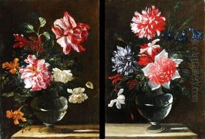 Still Life Of Flowers In A Vase (+ Another; Pair)