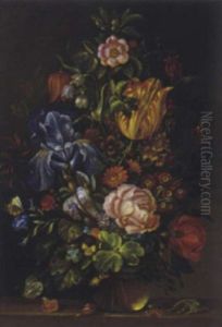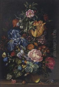 Blumenstraus In Einer Glasvase Oil Painting by Nicolas Baudesson