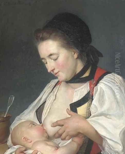 Bring the timeless beauty of Nicolas Benjamin Delapierre's A Mother feeding her child into your home with a handmade oil painting reproduction. Carefully recreated on canvas by skilled artists using traditional techniques, this piece captures the delicate brushwork, subtle light, and vibrant color of the original masterpiece. With museum-level quality and rich texture, it brings elegance and artistic depth to any space. Enjoy free shipping and make this masterpiece a part of your personal collection.
