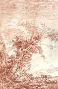 Two Shepherds Sitting Under A Tree In A Landscape