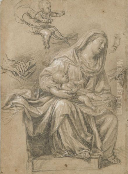 La Vierge Assise, Tournee Vers La Droite, Tenant L'enfant Jesusetendu Sur Ses Genoux