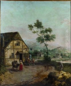 Peasants Travelling On A Path By A Hamlet