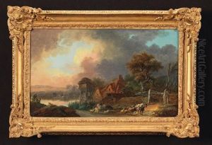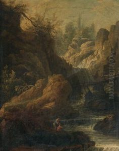 An Extensive River Landscape With Figures Resting By A Waterfall, With A Herder And His Goats; And An Extensive River Landscape With Shepherds And Their Livestock At Rest