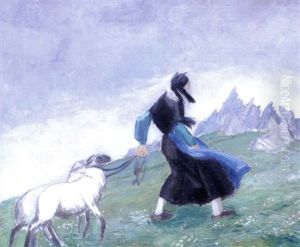 Jeune Bergere Passant Une Passerelle