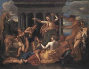The Holy Family Together With Saint Elizabeth, The Infant Saint John And Putti, In An Arcadian Landscape