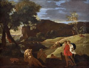An Arcadian landscape with stories from the legends of Pan and Bacchus