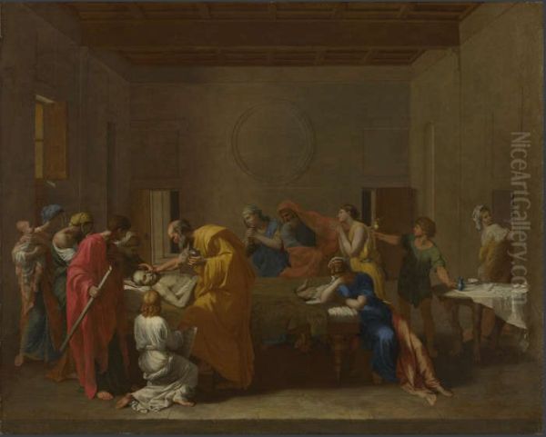 Bring the timeless beauty of Nicolas Poussin's Seven Sacraments - Extreme Unction I into your home with a handmade oil painting reproduction. Carefully recreated on canvas by skilled artists using traditional techniques, this piece captures the delicate brushwork, subtle light, and vibrant color of the original masterpiece. With museum-level quality and rich texture, it brings elegance and artistic depth to any space. Enjoy free shipping and make this masterpiece a part of your personal collection.