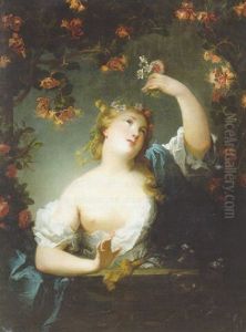 Portrait De Jeune Femme A La Robe Ornee D'oeillets