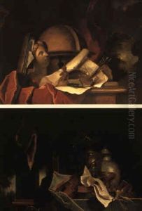 Portrait Of A Gentleman At A Table Holding A Covered Mug Andpipe