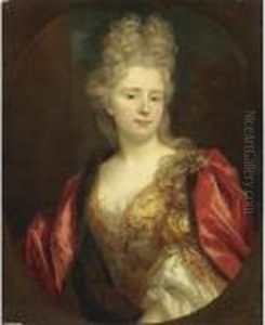 Portrait Of Angelique D'hautefort, Half-length, In A Red And Gold Embroidered Bodice And Skirt