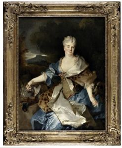 A Portrait Of A Lady As Diana, Half Length, Wearing A Pink Silk Dress With Lace Cuffs And An Embroidered Bodice, Holding A Bow In Her Left Hand