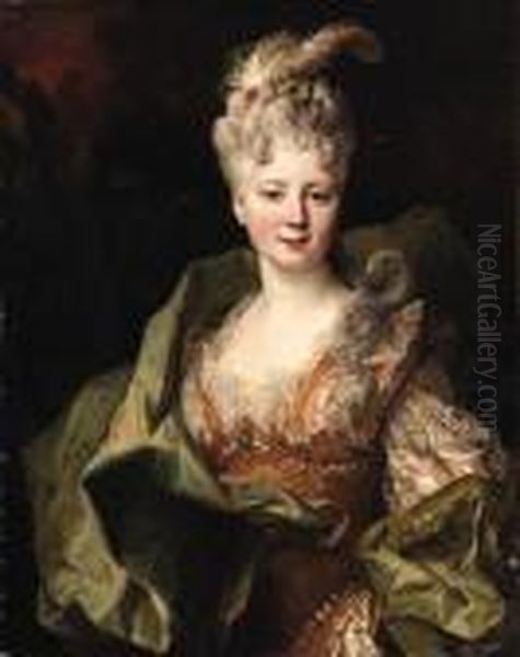Bring the timeless beauty of Nicolas de Largillierre's Portrait Of Mlle. Jeanne De Gagne Perrigny, Half-length, In Anembroidered Orange And White Dress And Green Wrap into your home with a handmade oil painting reproduction. Carefully recreated on canvas by skilled artists using traditional techniques, this piece captures the delicate brushwork, subtle light, and vibrant color of the original masterpiece. With museum-level quality and rich texture, it brings elegance and artistic depth to any space. Enjoy free shipping and make this masterpiece a part of your personal collection.