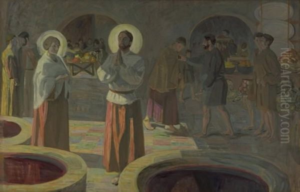 Bring the timeless beauty of Niels Larsen Stevns's Brylluppet i Kana into your home with a handmade oil painting reproduction. Carefully recreated on canvas by skilled artists using traditional techniques, this piece captures the delicate brushwork, subtle light, and vibrant color of the original masterpiece. With museum-level quality and rich texture, it brings elegance and artistic depth to any space. Enjoy free shipping and make this masterpiece a part of your personal collection.