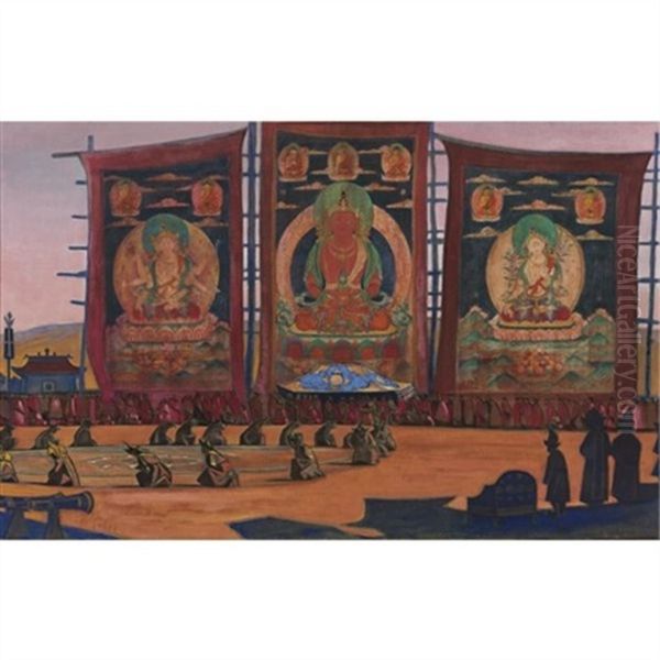Bring the timeless beauty of Nikolai Konstantinovich Roerich's Mongol Tsam (religious Ceremony) into your home with a handmade oil painting reproduction. Carefully recreated on canvas by skilled artists using traditional techniques, this piece captures the delicate brushwork, subtle light, and vibrant color of the original masterpiece. With museum-level quality and rich texture, it brings elegance and artistic depth to any space. Enjoy free shipping and make this masterpiece a part of your personal collection.