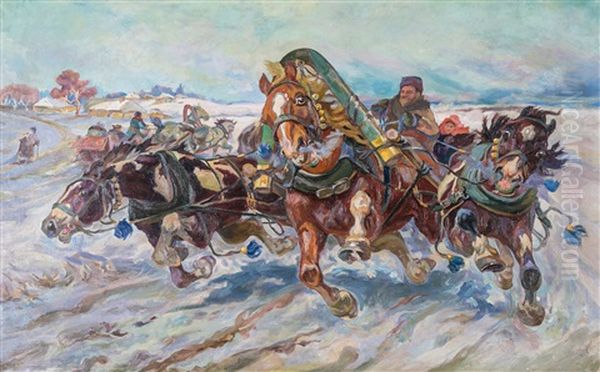 Bring the timeless beauty of Nikolai Semenovich Samokish's Wilde Troikafahrt In Winterlicher Landschaft into your home with a handmade oil painting reproduction. Carefully recreated on canvas by skilled artists using traditional techniques, this piece captures the delicate brushwork, subtle light, and vibrant color of the original masterpiece. With museum-level quality and rich texture, it brings elegance and artistic depth to any space. Enjoy free shipping and make this masterpiece a part of your personal collection.