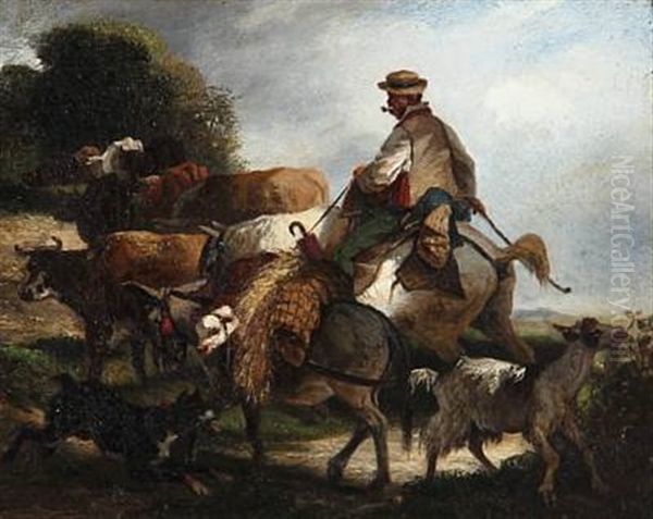 A Peasant On His Way To The Market With His Animals