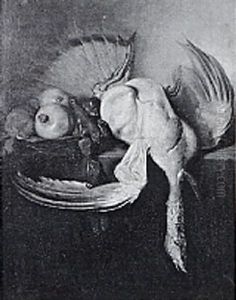 Stilleben Mit Weinflaschen Und Korb Mit Herbstlichen Fruchten