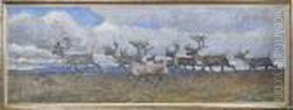 Renhjorden Drager Forbi, Signerad Och Daterad Nils Tiren 1917