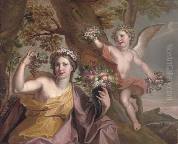 Abundance With A Putti In A Landscape