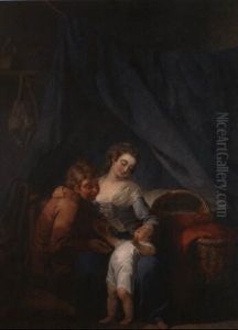 Une Savoyarde, A Mother And Child With A Dog In An Interior