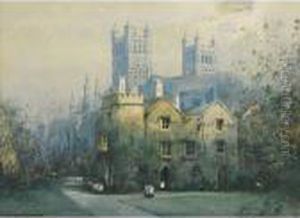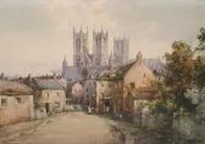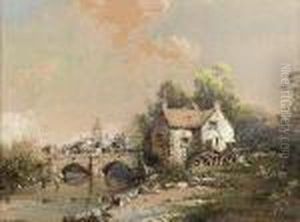 An Italian Landscape With A Distant Town, Viaduct And Lake Beyond
